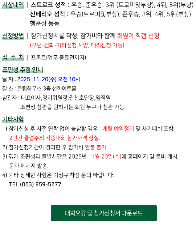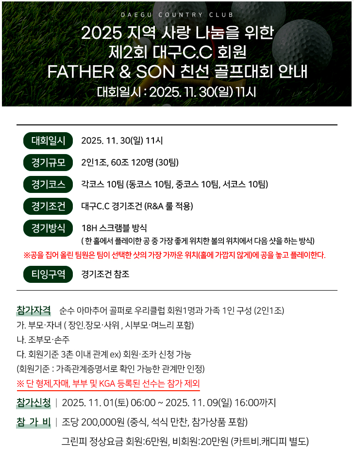 *´ë±¸cc 2025 Áö¿ª »ç¶û³ª´®À» À§ÇÑ Á¦2ȸ ´ë±¸C.C ȸ¿ø FATHER & SON Ä£¼± °ñÇÁ´ëȸ ¾È³»