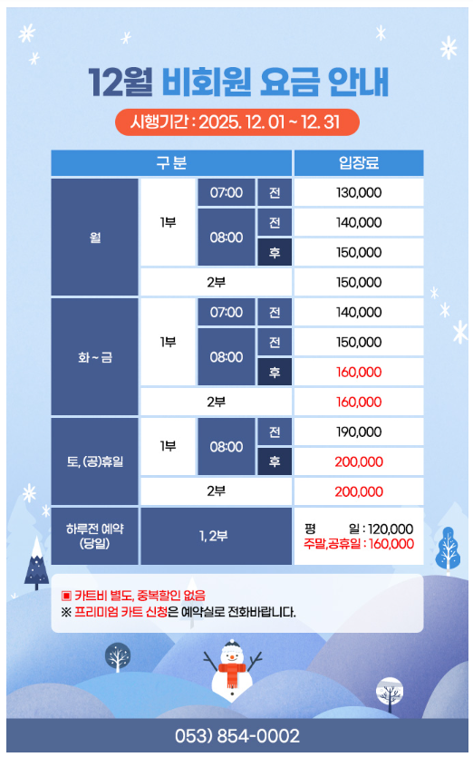 ¡Ø°¢ °ñÇÁÀ庰 2025³â 12¿ù ¿ä±Ý ¾È³»¡Øupdate