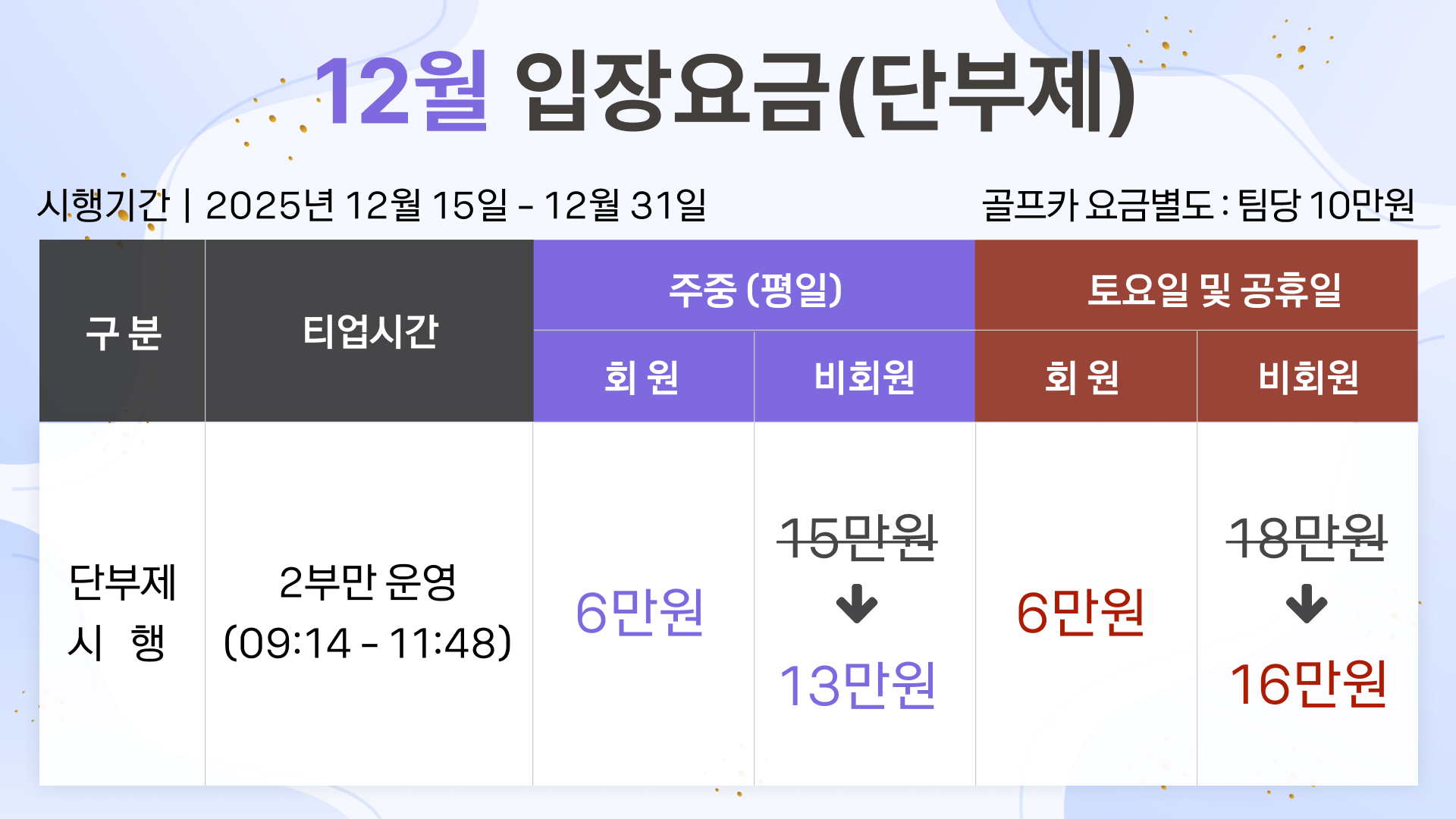 ¡Ø°¢ °ñÇÁÀ庰 2025³â 12¿ù ¿ä±Ý ¾È³»¡Ø