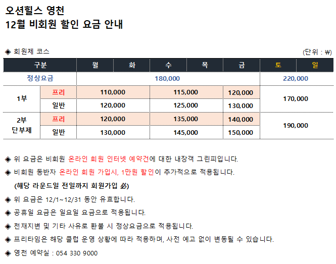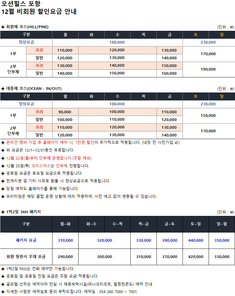 ¡Ø°¢ °ñÇÁÀ庰 12¿ù ÀÌ¿ë¿ä±ÝÀÌ º¯µ¿µÇ¿À´Ï È®Àιٶø´Ï´Ù.¡Ø