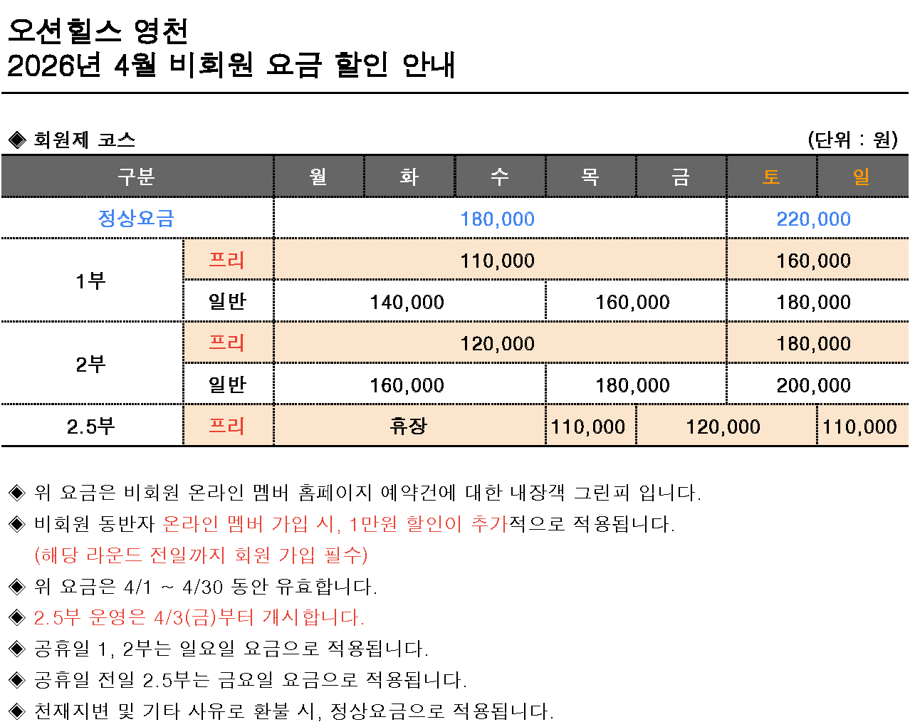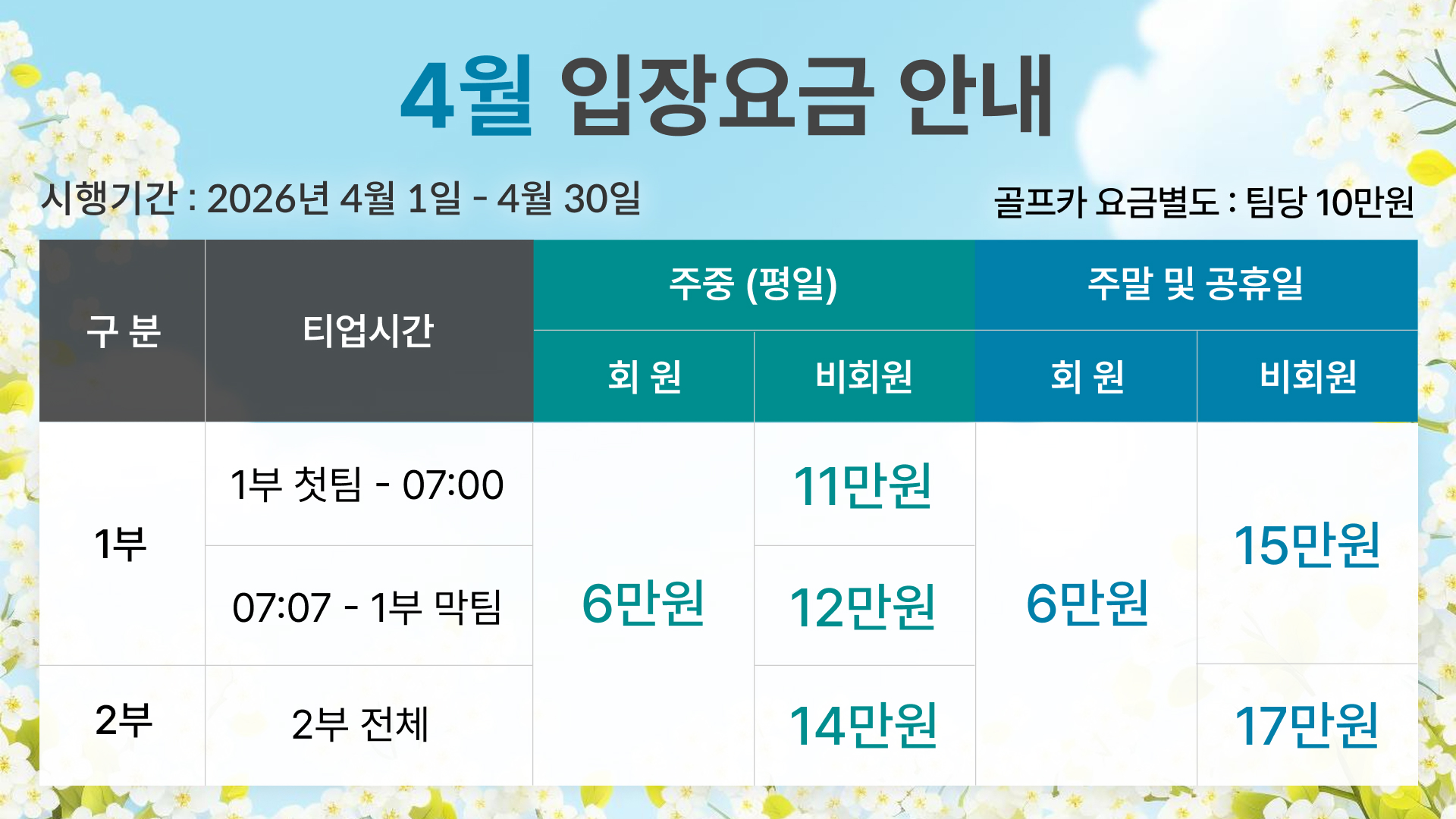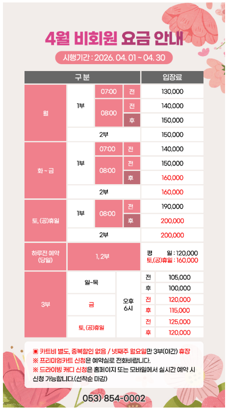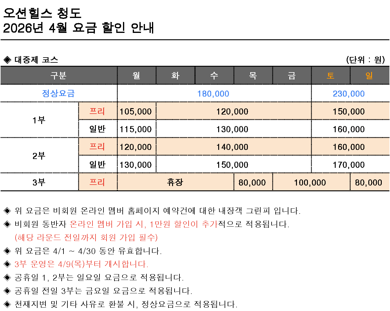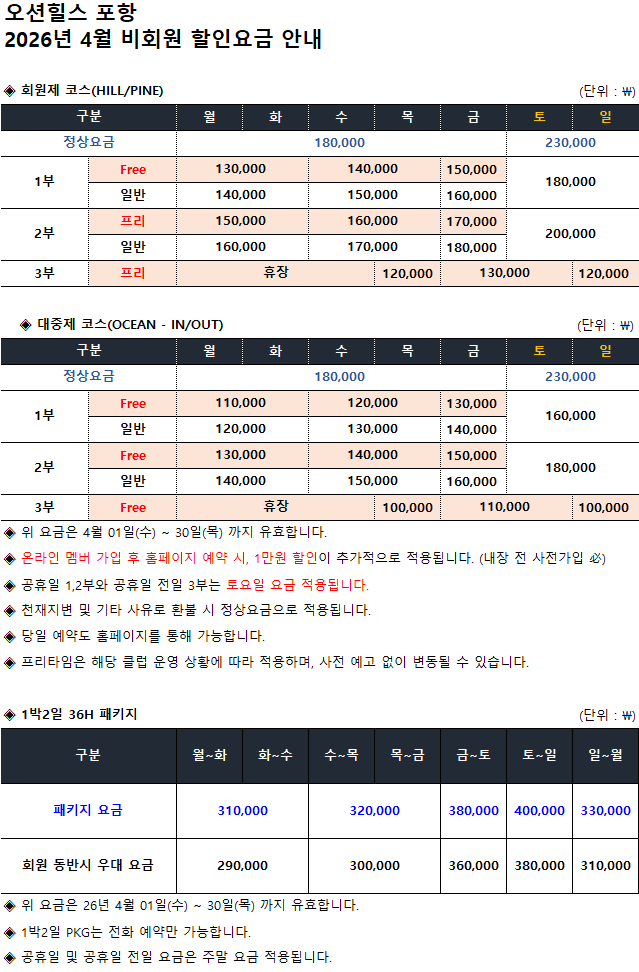 ¡Ø°¢ °ñÇÁÀ庰 2026³â 4¿ù ¿ä±Ý ¾È³»¡Ø